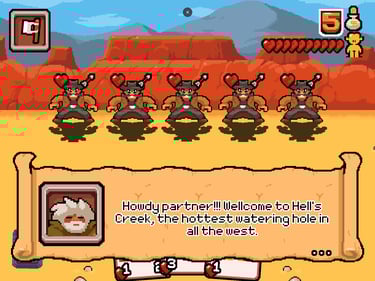 Deck build your way out of the heat with all the available tools the wild west has to offer. Clutch your purse tightly as you barrel past wave after wave of enemies in order to take down the Big Baddy and secure his oasis for yourself.